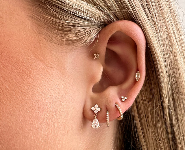 Our expert piercers work exclusively with 14k solid gold jewellery and offer tailored styling advice and ear curation for your individual anatomy.