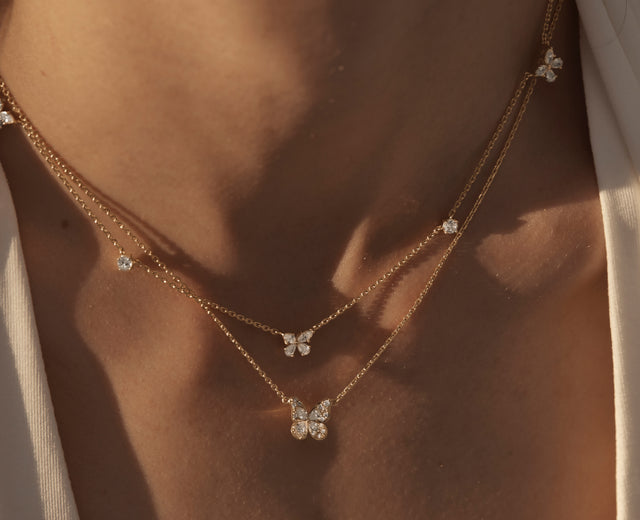 Necklaces inspired by butterflies, mantras, and symbols of connection.