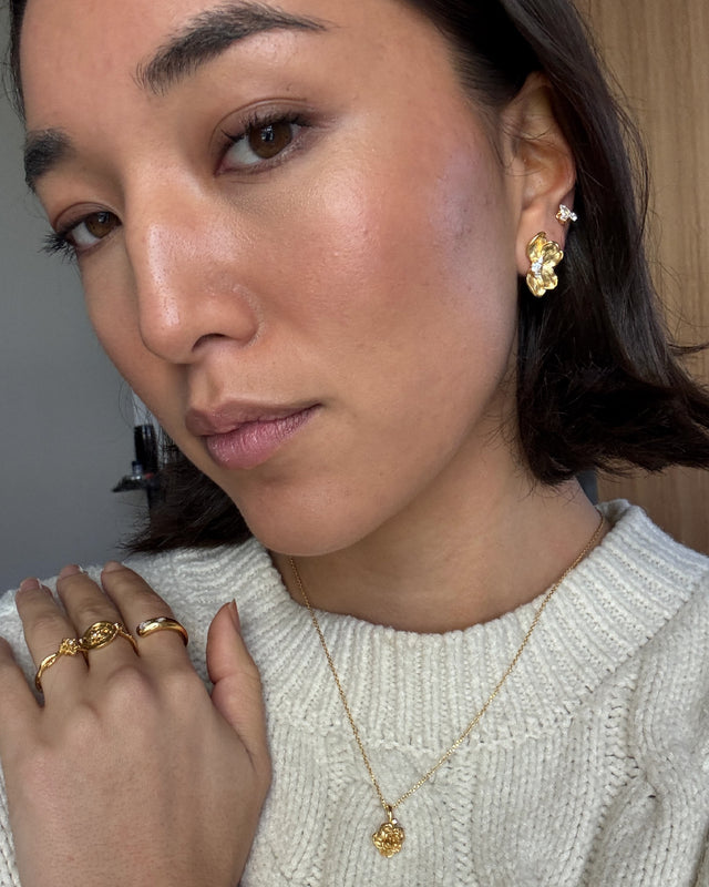 Jewellery is one of the main ways I express myself - if I’m feeling lowkey I like to go for something a bit dainty and understated, and when I’m feeling super confident I love to throw on a big chunky gold hoop and a fun necklace stack. I have a few special sentimental pieces that have been gifted to me by close friends and family, and also a few pieces that are very sentimental to me because they remind me of a certain time in my life. For example, before I went on my first ever solo trip I bought a simple gold chain with a Bialette pendant because it’s what my Dad uses to make coffee for my family in the mornings. It was such a nice reminder of them whilst I was away.