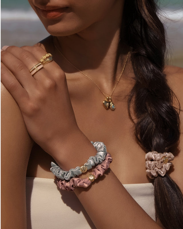 Discover our pure silk scrunchies and holiday bon-bons; little luxuries that make the perfect gift.