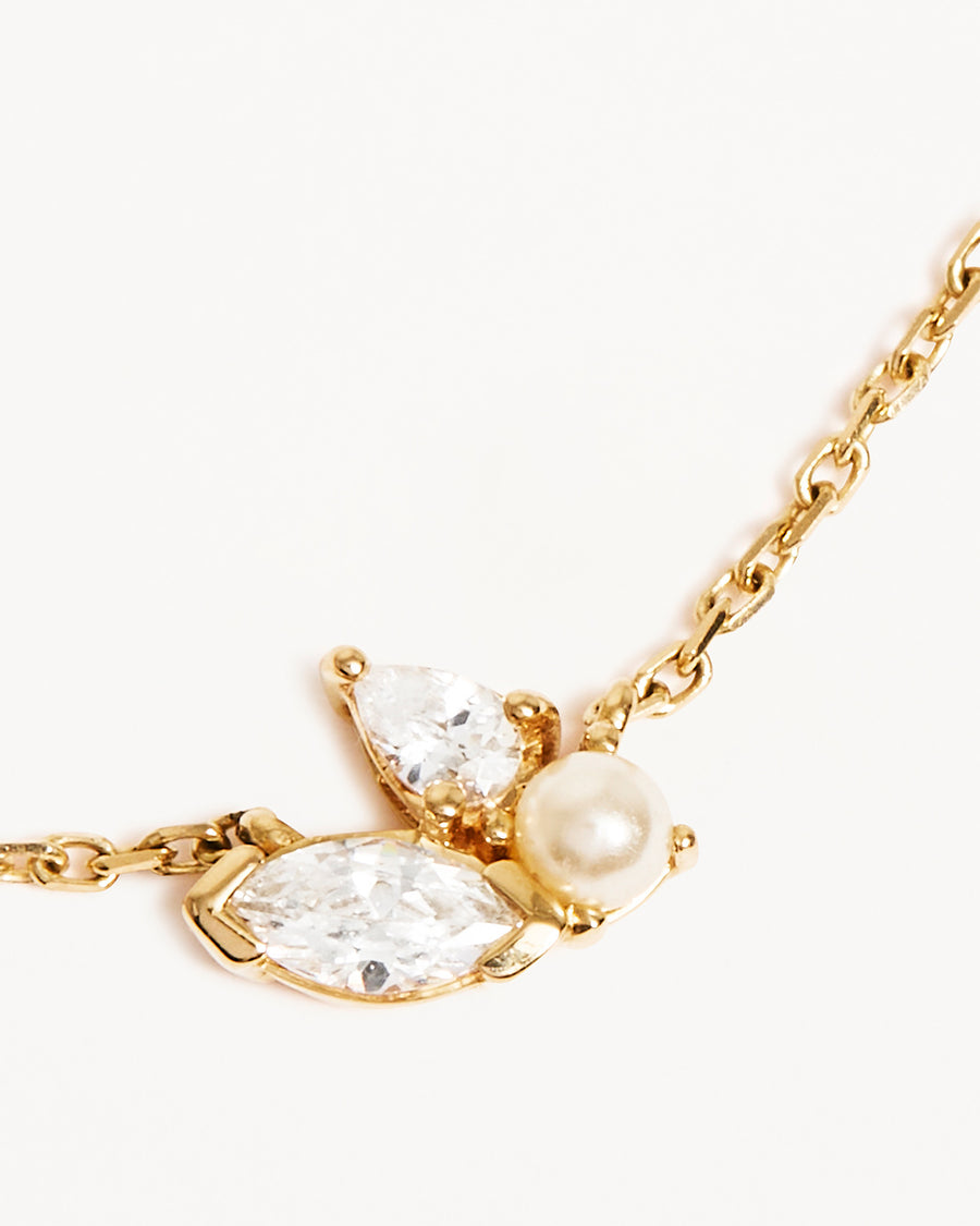 Embrace minimalist elegance with our 14k Gold In Bloom Lab-Grown Diamond Necklace, designed as a timeless heirloom piece to cherish forever. This keepsake features a natural freshwater pearl, marquise-cut lab-grown diamond in an elegant v-cap setting, and a pear-cut lab-grown diamond in a three-claw setting. Drawing inspiration from the lotus flower in mid bloom, let this piece serve as a reminder that life is a journey, not an outcome.