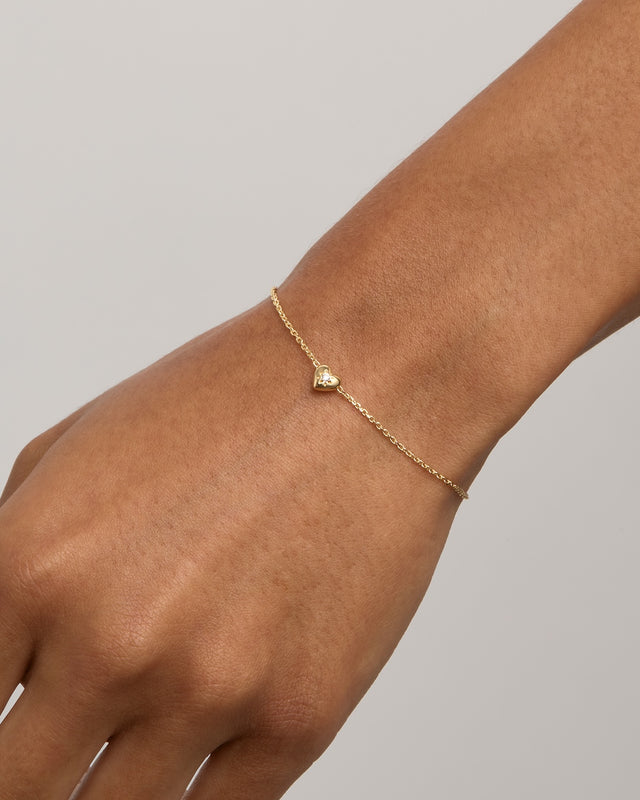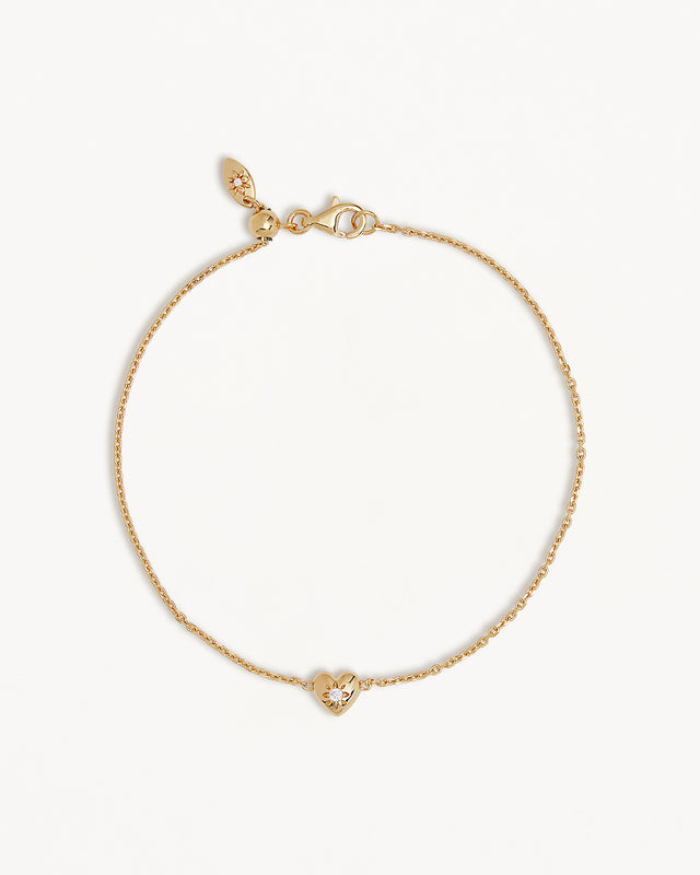 A dainty heart design, set with a sparkling crystal, the Blooming Hearts Bracelet features our iconic lotus motif for new beginnings and love. Available in 18k gold vermeil.