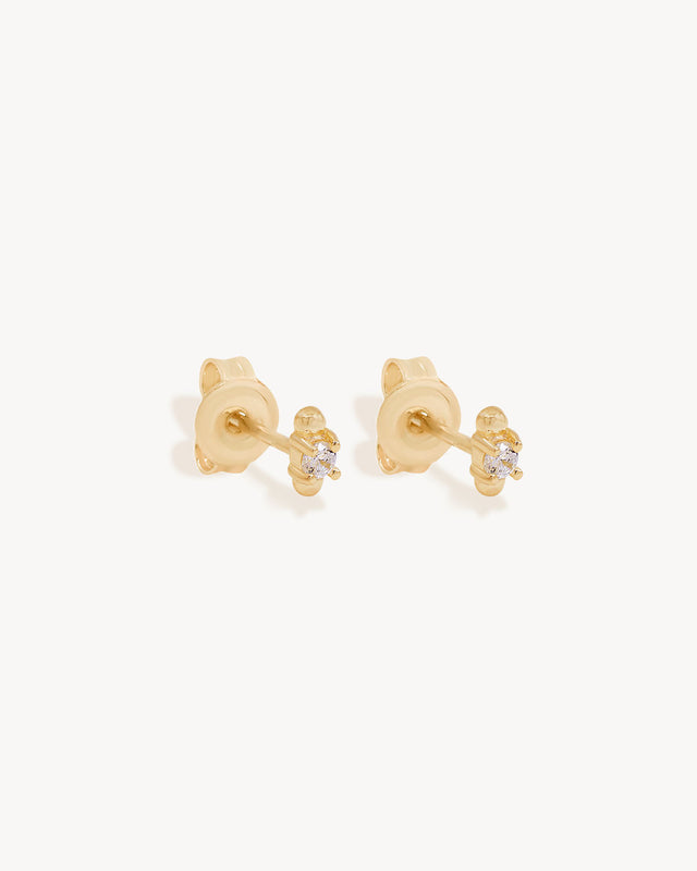 Elevate your ear stack with our Pure Light Stud Earrings. Delicate and dainty, this stud earring will add some sparkle to your curated stack creating a memorable style. Wear this stud earring intentionally on its own or stacked with other earrings.