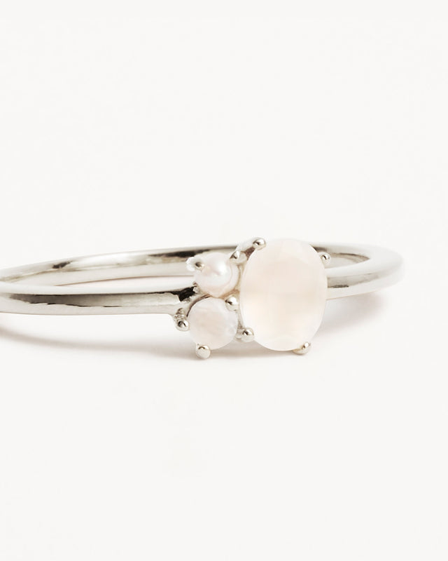 Our Gold Kindred June Birthstone Ring features a kaleidoscopic cluster of ethically and sustainably sourced natural moonstone and freshwater pearl. Adorn yourself in the June birthstones to embody the luminescent purity of the journey of a pearl emerging from the depths of the ocean. This subtle stackable ring mirrors the diverse hues of a rainbow, symbolizing inclusiveness and diversity. It hints at the enchanting connections that enhance our spirits and illuminate our lives with a touch of magic.