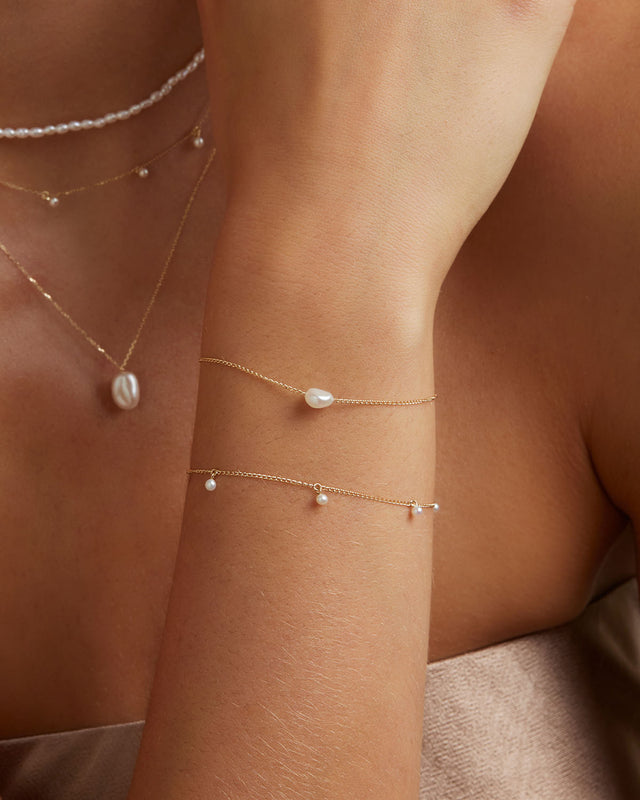 Designed to transport you to your place of peace, our 14k Solid Gold Tranquillity Bracelet is both simple and timeless. This keepsake features a natural baroque pearl set in solid gold, bringing a sense of calm to the wearer.